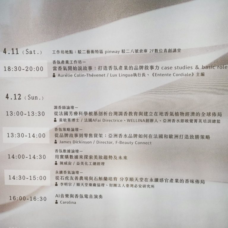 It was a true honor to take part in the very first edition of the Asia Fragrance Festival, held in Kaohsiung, Taiwan on April 11–12.