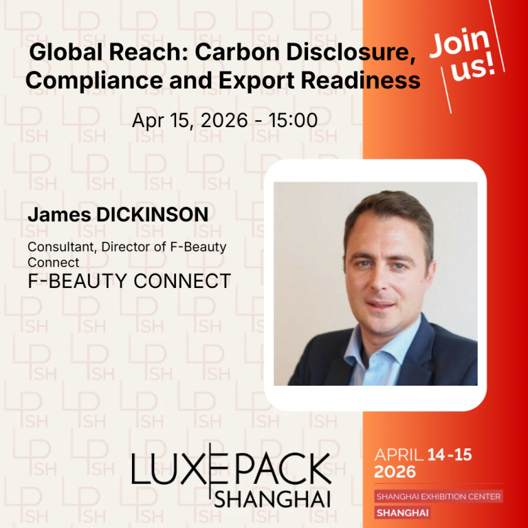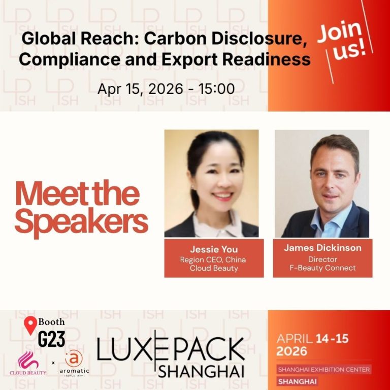 We are pleased to share that our partner James DICKINSON, Director at F-Beauty Connect, and Jessie You, Region CEO China Branches at Cloud Beauty, will be speaking at the panel-Global Reach Carbon Disclosure, Compliance and Export Readiness